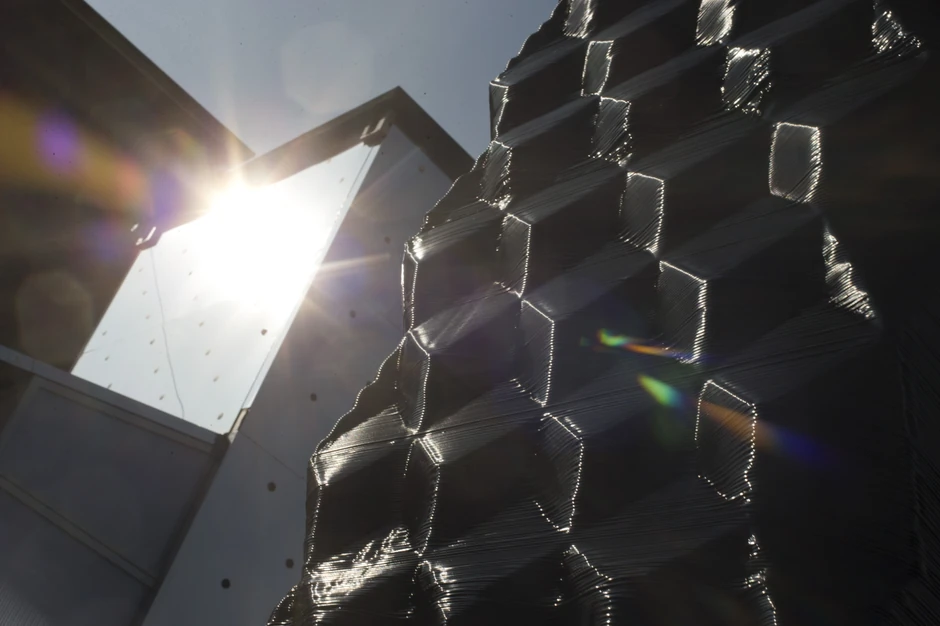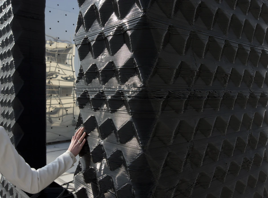 Da bi, sloj po sloj, odštampao jedan masivni, monolitni blok u obliku pčelinjeg saća, “Kamermakeru” je potrebno oko nedelju dana. Prvi blok, koji čini jedan ugao zgrade i deo stepeništa, bio je težak 180 kilograma.