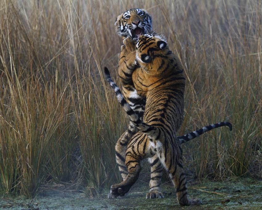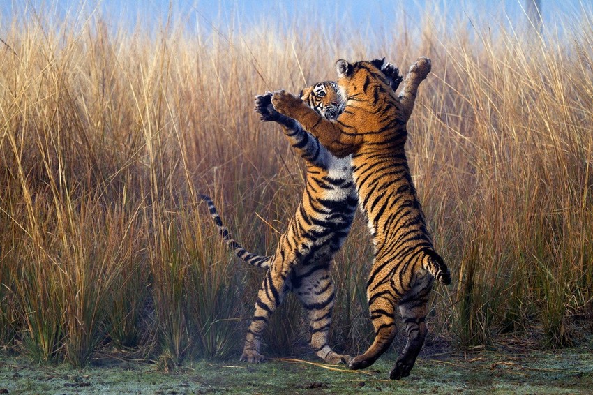 Fotograf Suvik Kundu zabeležio je neobično ponašanje tigrova u nacionalnom parku Rantambor u indijskoj državi Radžastan. Dva neustrašiva predatora izgledala su kao da plešu tango.