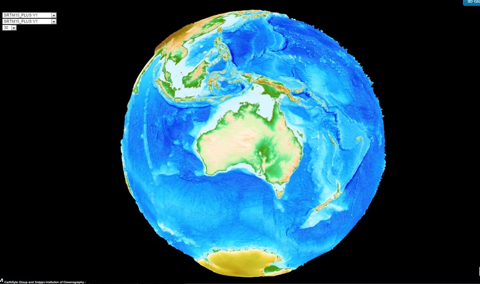 Naše znanje o dnu okeana dolazi od mapa Zemljinog gravitacionog polja, koje su nastale zahvaljujući satelitskim merenjima. Treći globus, koji predstavlja morsko dno, pogledajte ovde.