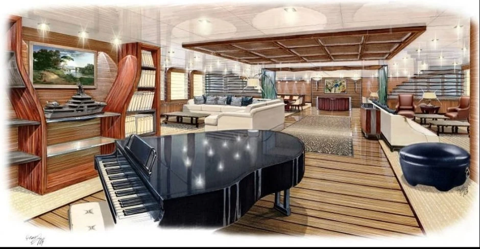 Plovilo koje se trenutno gradi u Norveškoj raspolagaće prostorijama za 12 gostiju i 27 članova posade. U pitanju je prava palata na vodi, čiji će putnici moći da koriste i bioskop, salon lepote, i stanicu za pristajanje podmornice za 6 osoba.