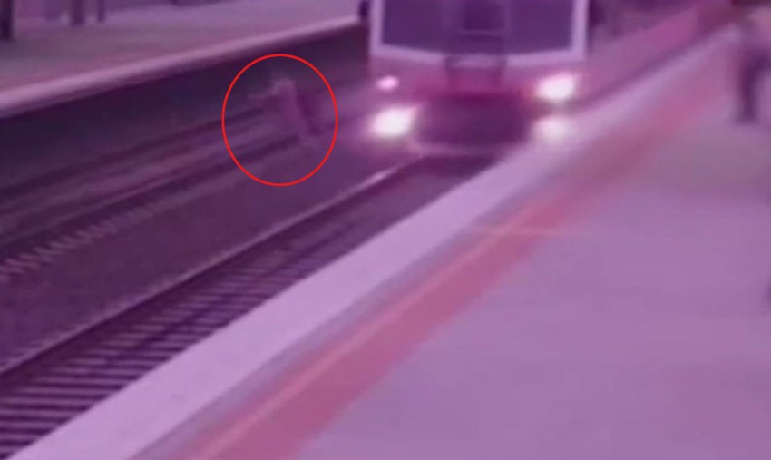 Jednog čoveka desetinke sekunde su delile od smrti nakon što je sišao na prugu.