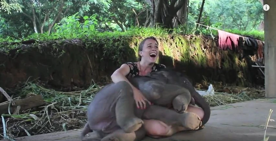 Od kučeta svi očekuju da se tokom češkanja i maženja u jednom trenutku sklupča u krilu osobe s kojom razmenjuje nežnosti. Ali od slončeta to nije očekivala čak ni njegova čuvarka.