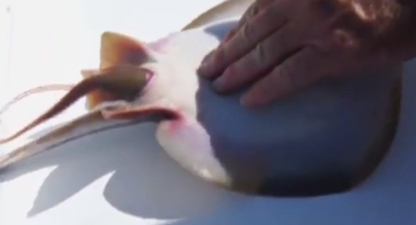 Hteo je da je raseče i od nje napravi mamac za ajkule, a onda su primetili da iz nje viri deo male raže.