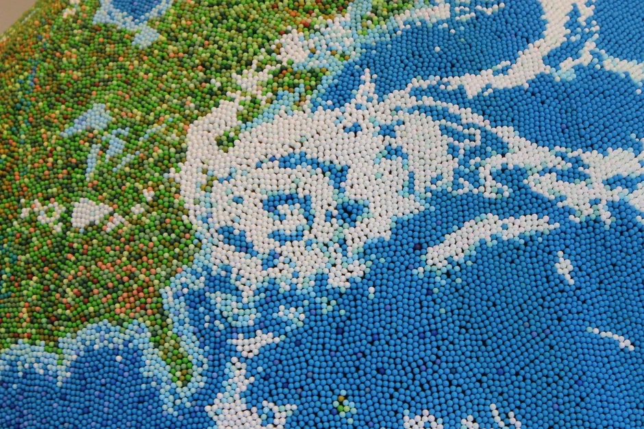 Sve ih je ručno obojio, a rezultat je model Zemaljske kugle težak 90 kilograma koji verno prikazuje kontinente, okeane pa čak i neke vremenske uslove.