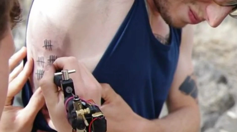 Francuski umetnik Toni Vajngartner često putuje autostopom, ali nedavno je doživeo najbolnije iskustvo na putu. Uz pomoć prijatelja, on je tetovirao po jednu "recku" za svaki automobil koji nije želeo da se zaustavi, tako da je na kraju ispod ruke imao ukupno 48 crtica.