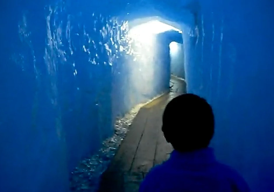 Inovativni metod zaštite Ronskog glečera od topljenja, prekrivanje ćebadima, omogućio je posetiocima da pogledaju ovaj ogroman ledeni prekrivač iz veoma jedinstvene perspektive - iznutra.