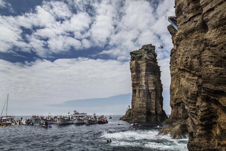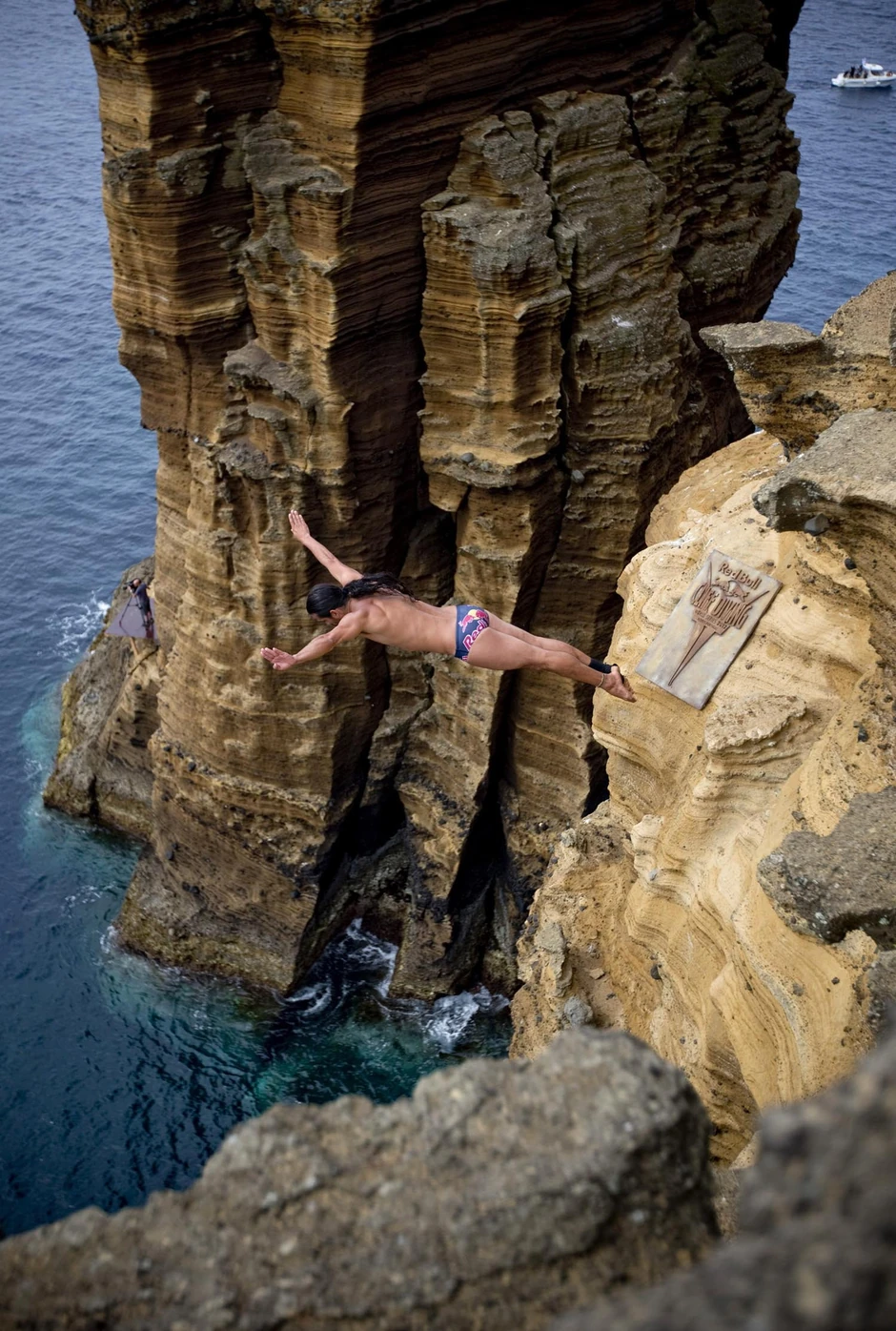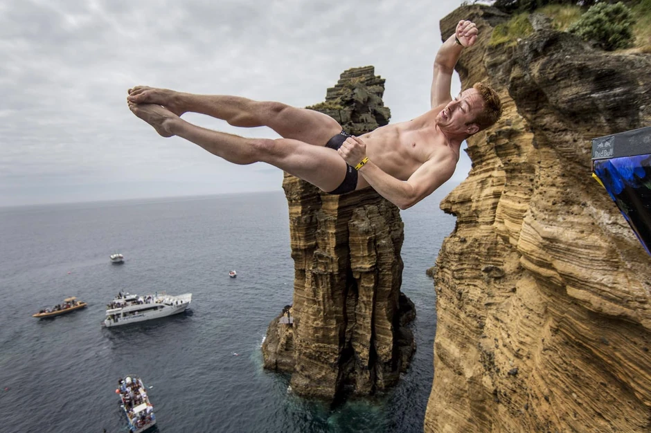 Svaki sport ima svoju opasnu stranu, ali igranje stonog tenisa nikako ne može da se poredi sa skakanjem sa litice visoke 30 metara. Neustrašivi učesnici "Red Bul klif dajving" takmičenja pokazali su da bacanje u vode Atlantika između ogromnih stena može biti zabavno.