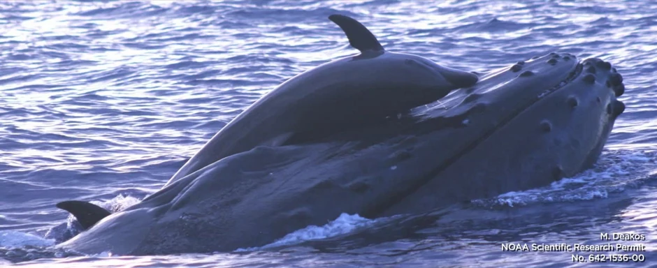 U vodama oko Havaja nedavno su zabeleženi prizori kao iz crtanih filmova - delfin i ogromni grbavi kit koji se igraju dok plivaju zajedno.