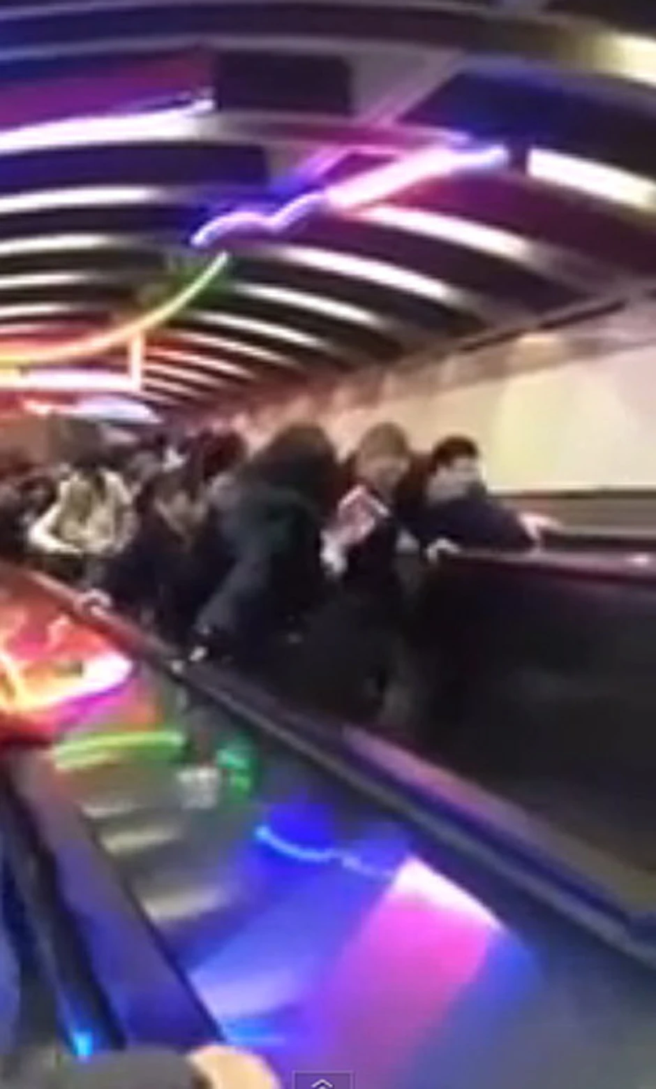 Umesto da idu na gore, naglo su se ubrzale i promenile smer, što je izazvalo paniku među ljudima koji su ionako stajali "kao sardine". Pokušavajući da održe ravnotežu, putnici su počeli da padaju jedni preko drugih, a petoro ljudi je lakše povređeno.