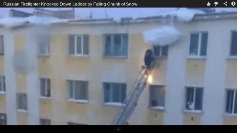 Operacija spašavanja žene i deteta iz zapaljenog stana u višespratnici u ruskom gradu Magadanu umalo nije okončana tragedijom, pošto je na vatrogasca, koji im je krenuo u pomoć, sa krova pala gomila snega.