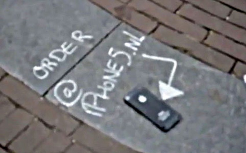 Groznica zvana "ajfon 5" zahvatila je čitavu planetu i poslužila kao povod za brojne šale na račun zaljubljenika u "Epl". Tako je nekoliko momaka zalepilo novi "ajfon" za beton i to baš na jednom od najprometnijih trgova Amsterdama, a potom su posmatrala kako ljudi bezuspešno pokušavaju da ga odlepe sa trotoara.