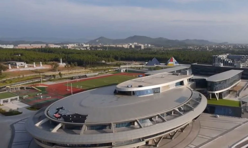 Ova zgrada je deo kompleksa "NetDragon Websofta", kineske kompanije koja se bavi proizvodnjom igrica i mobilnim internetom.