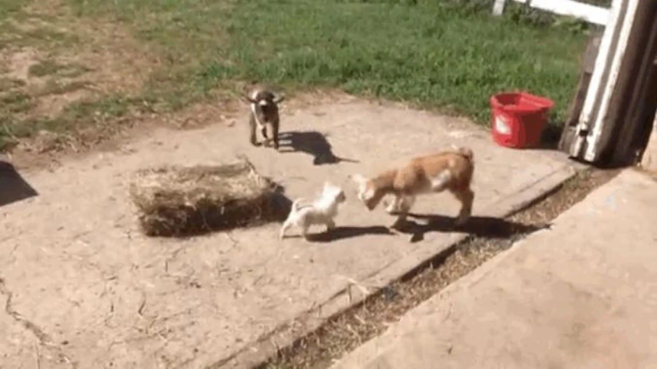 Prvi susreti nekih životinja jednostavno su neodoljivi. To je bio slučaj i prilikom prvog susreta mladunčeta čivave i dva jareta.