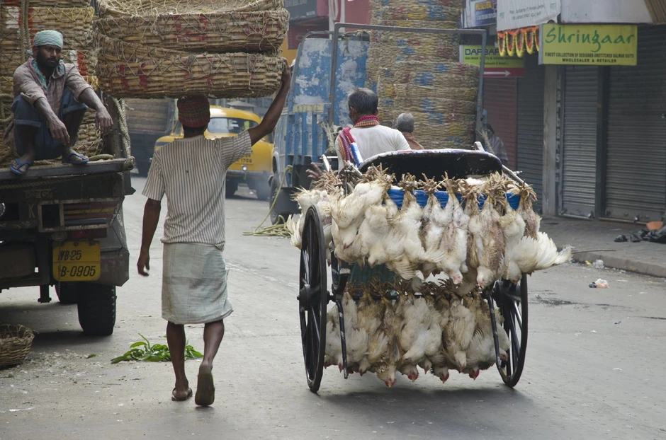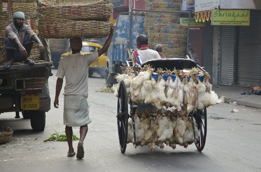 Kokoške u Indiji prevoze rikšama i to naglavačke
