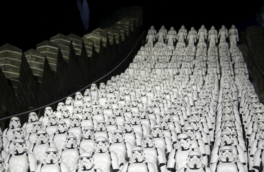 Kada se u ponedeljak konačno pojavio treći i kompletirani trejler za sedmi nastavak serijala "Zvezdani ratovi", prodaja karata za premijeru je toliko eksplodirala da su neki sajtovi za rezervacije pali u naletu tolikog broja poseta. "Dizni" je u euforičnom maniru nastavio svoju kampanju i to fenomenalnim maršom 500 imperijalnih jurišnika na Kineskom zidu.