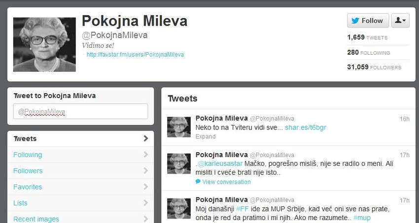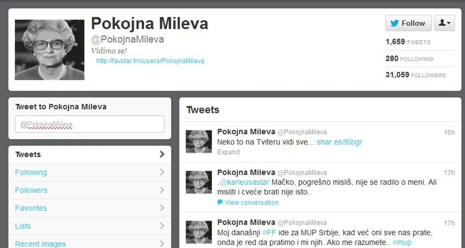 Otkako se pojavila na Tviteru i Fejsbuku "Pokojna Mileva" postala je prava virtuelna zvezda u Srbiji koja se, kako je pisalo, javljala s onog sveta.