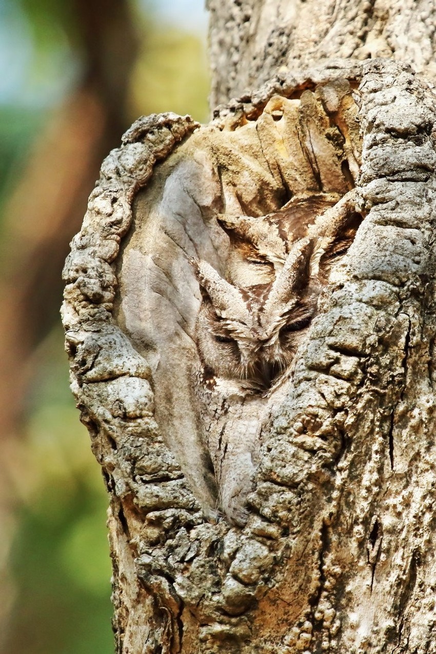 Primetio je, dok se šetao, sove koje su se, zahvaljujući boji perja, skoro stopile sa stablom.
