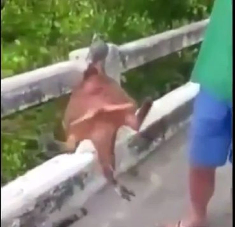 U snimku se vidi kako ribar sa upecanim stvorenjem stoji na mostu iznad reke u kojoj ju je upecao. Ona se nekoliko puta zapraćakala na udici, čime su jasno do izražaja došle izrasline nalik na noge.