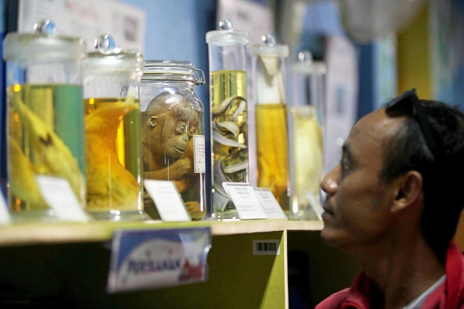 Osim orangutana, u istoj žutoj tečnosti, čuvaju se i druge vrste, uključujući delfine, zmije i ribe.