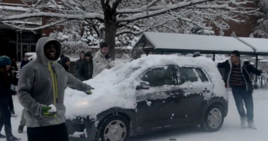 Studenti sa Univerziteta u Oregonu su prvi sneg proslavili velikim grudvanjem tokom koga su grudvama zasipali automobile u prolazu. Ipak, zimska idila se brzo otrgla kontroli i moguće je da će ceo slučaj završiti na sudu, jer je u jednom automobilu bio profesor kome se nije dopao ovakav praznični duh.