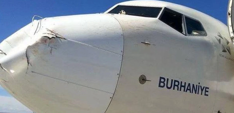 Avion kompanije "Turkiš Erlajns", koji je leteo iz Istanbula za Nevšir imao je krajnje neprijatan susret sa velikom pticom, sa kojom se sudario u letu. Šteta na prednjem delu aviona je zaprepastila sve, pa i samog pilota.