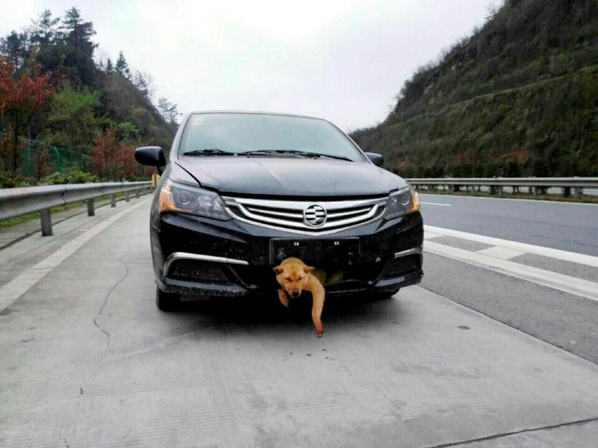 Žang je nastavio da vozi auto, ubeđen da je pas mrtav, ali je onda čuo neke zvuke koji su dopirali iz prednjeg dela automobila i zvučali kao lavež.
