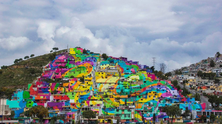 Mural, koji se sada nalazi na oko 160 kilometara od glavnog grada Meksiko Siti, se prostire preko 20.000 metara kvadratnih i obojio je domove od oko 450 porodica.