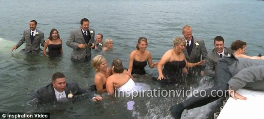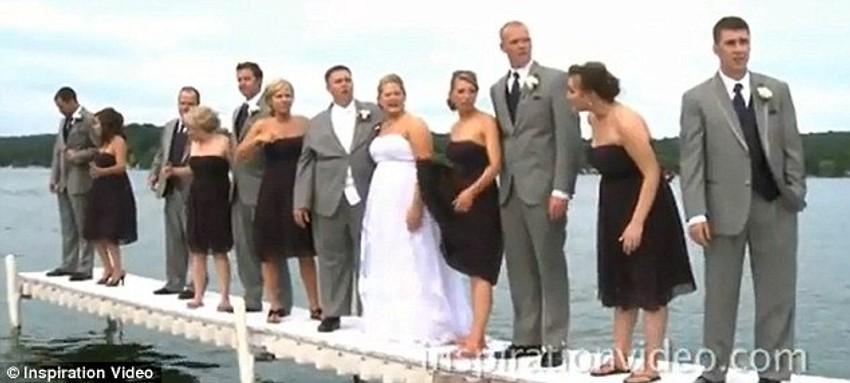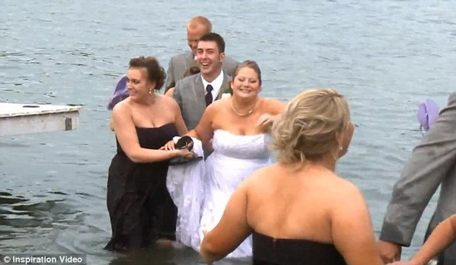 Na jednom venčanju nedavno održanom u Mičigenu, na Gan jezeru, mladenci i svatovi su pali u vodu, nakon što se dok na kojem su stajali slomio.