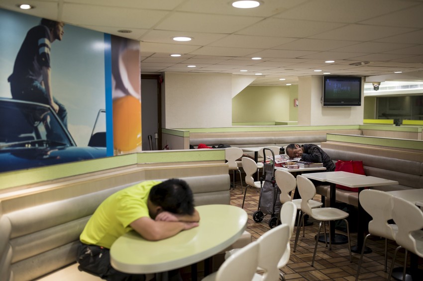 U Hong Kongu ima na hiljade "novih beskućnika", a Mekdonaldsovi restorani dozvolili su ljudima da u njima nađu mesto za odmor i sklonište od vremenskih neprilika i hladnih noći.