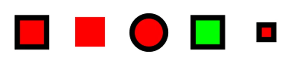 Svaki od oblika se po nečemu razlikuje od ostalih - jedan je zelen, jedan nije uokviren cenom linijom, jedan je manji od ostalih, jedan je okrugao.