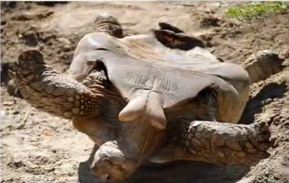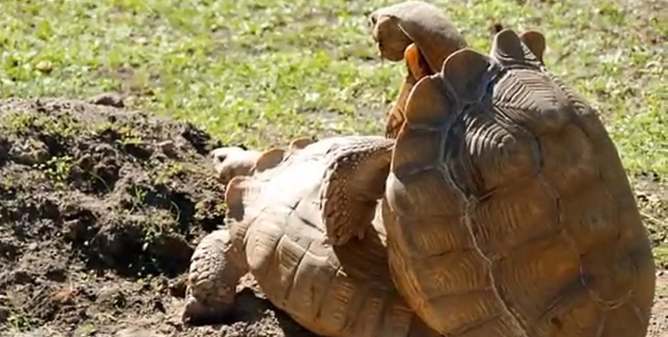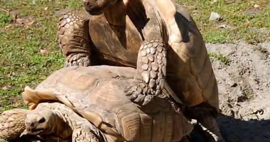 Ovaj mužijak kornjače je malo preterao u ljubavnom zanosu, pa je završio na leđima.