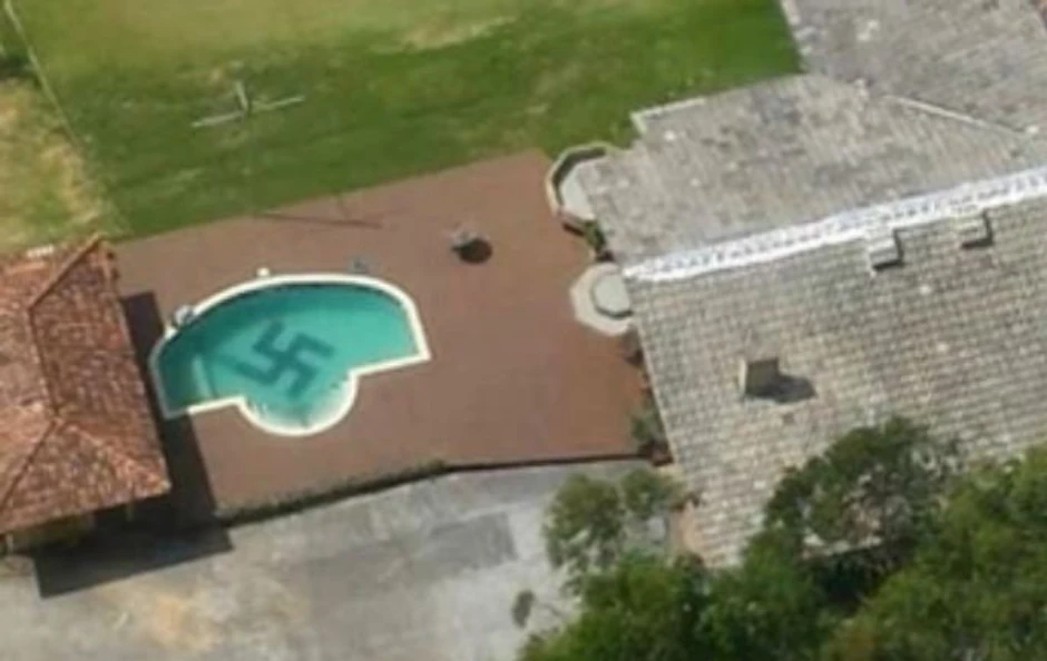 Pripadnici brazilske policije nabasali su na neverovatan prizor. Leteći helikopterom tokom potere za narkodilerima, primetili su u bazenu na privatnom posedu u gradu Pomerode u državi Santa Katarina, neverovatan prizor - na dnu bazena jasno se ocrtavala velika "svastika".