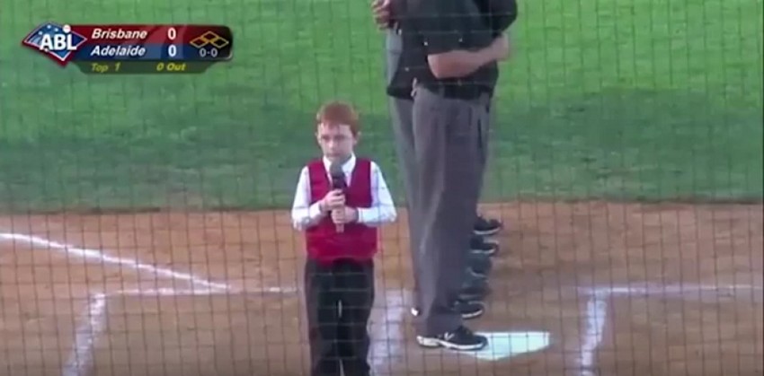 Ovaj dečak iz Australije imao je veliku čast da otpeva himnu na početku bezbol utakmice. Ali, avaj...