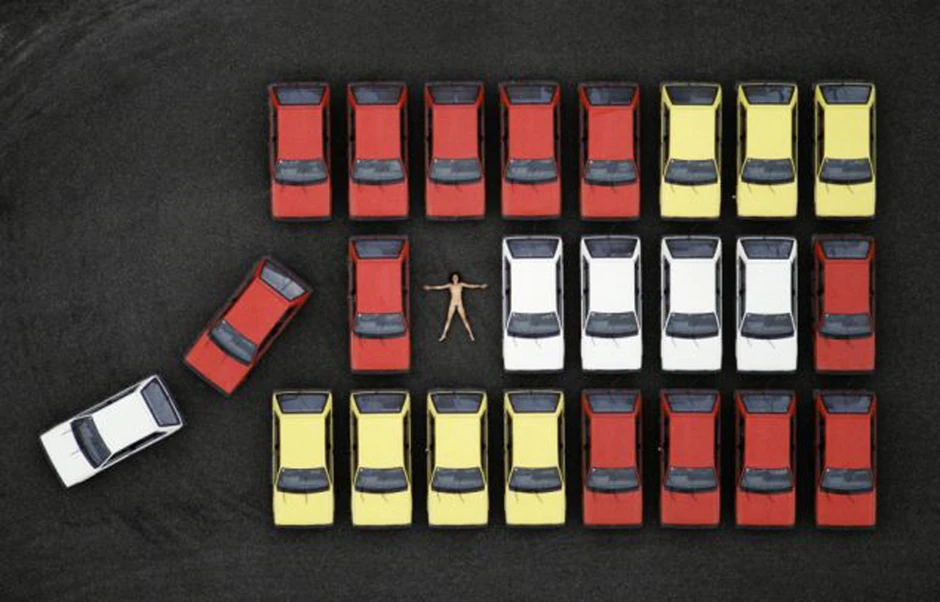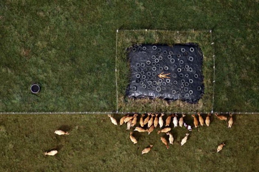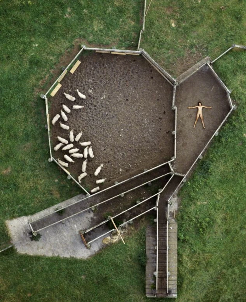 Fotograf Džon Kraford iz Oklanda između 1984. i 1987. godine slikao je predele Novog Zelanda iz ptičje perspektive. Prizore plaža, saobraćajnica i svinjskih farmi "začinio" je specijalnim sastojkom - svoje tadašnjom ženom, golom, raširenih ruku i nogu.