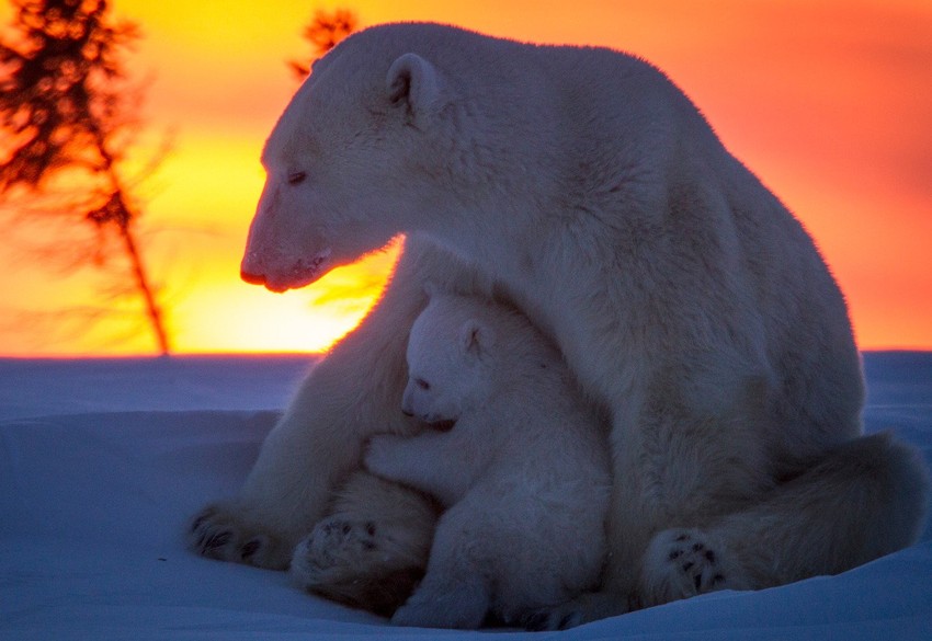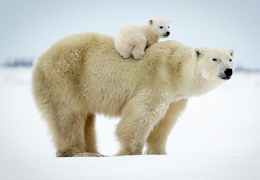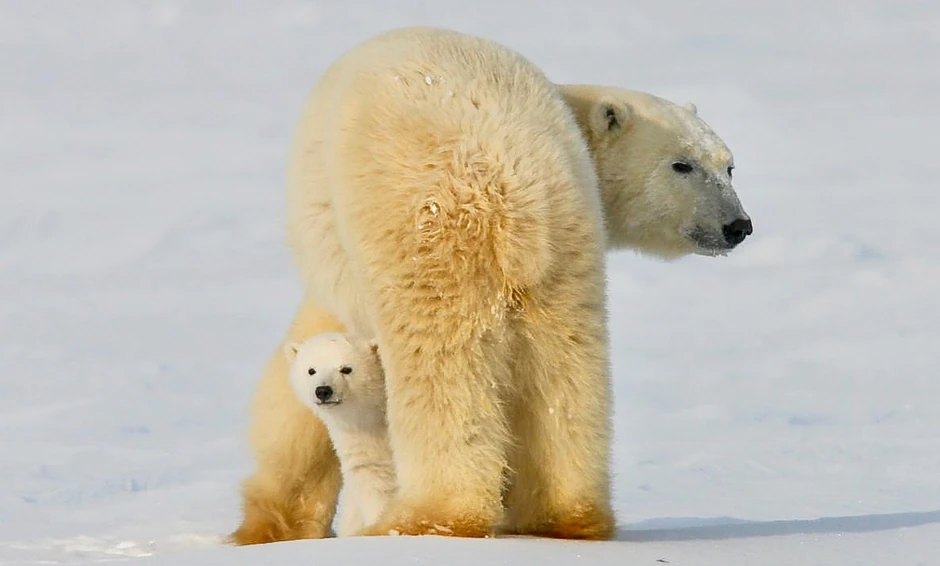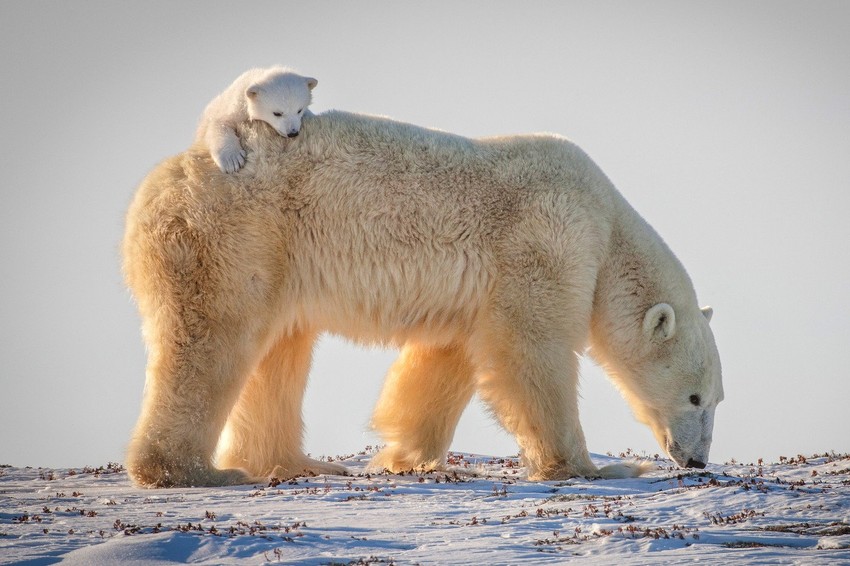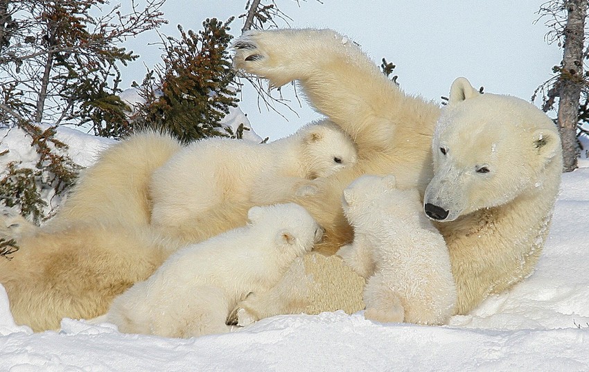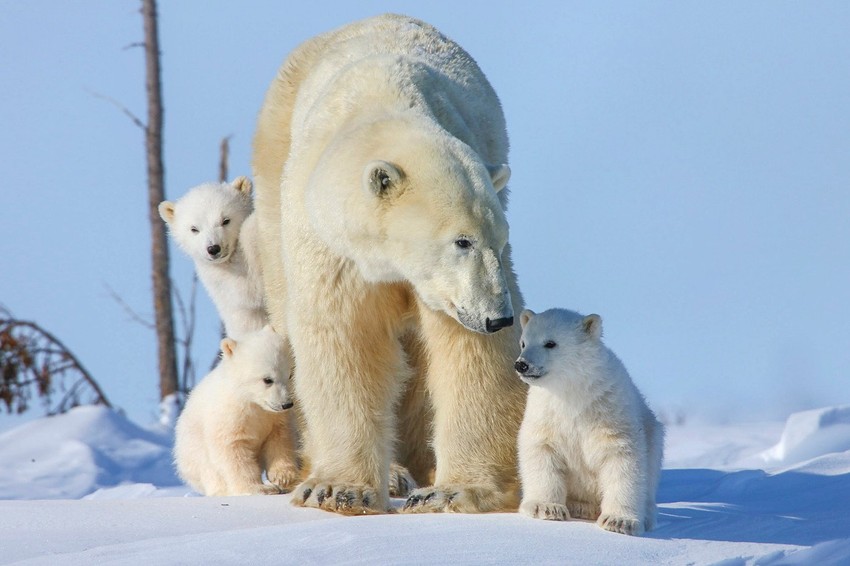 On je čak uspeo da slika i jednu polarnu medvedicu sa tri preživela mečeta, što se retko viđa u divljini.