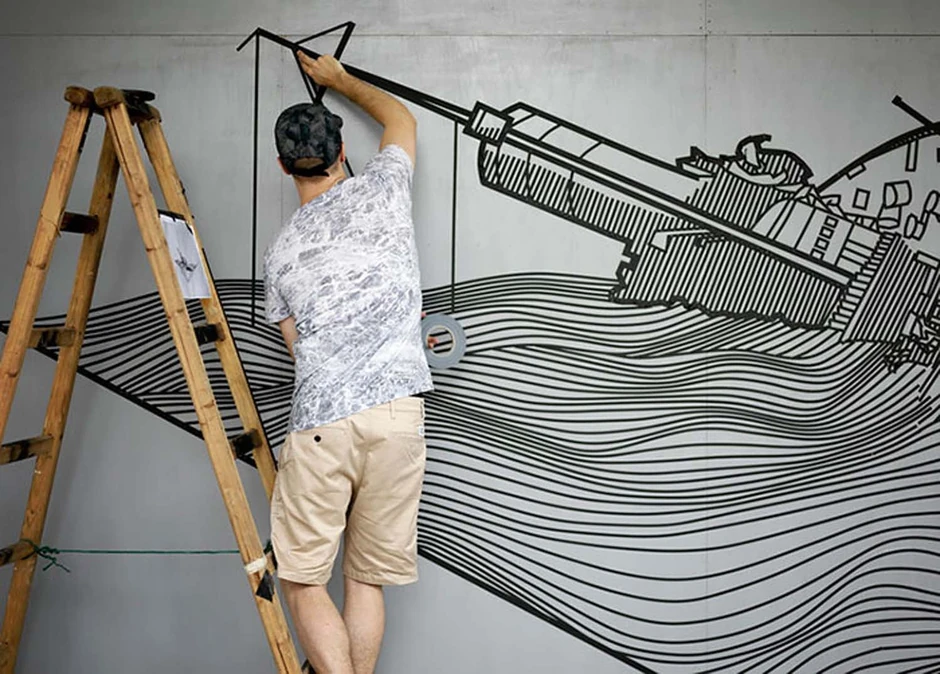 - Selotejp je postao moj glavni materijal tek 2005. i to sasvim slučajno. Hteo sam da ga iskoristim kao alat, a onda sam primetio da su linije selotejpa same za sebe obrazovale crtež - kaže on.