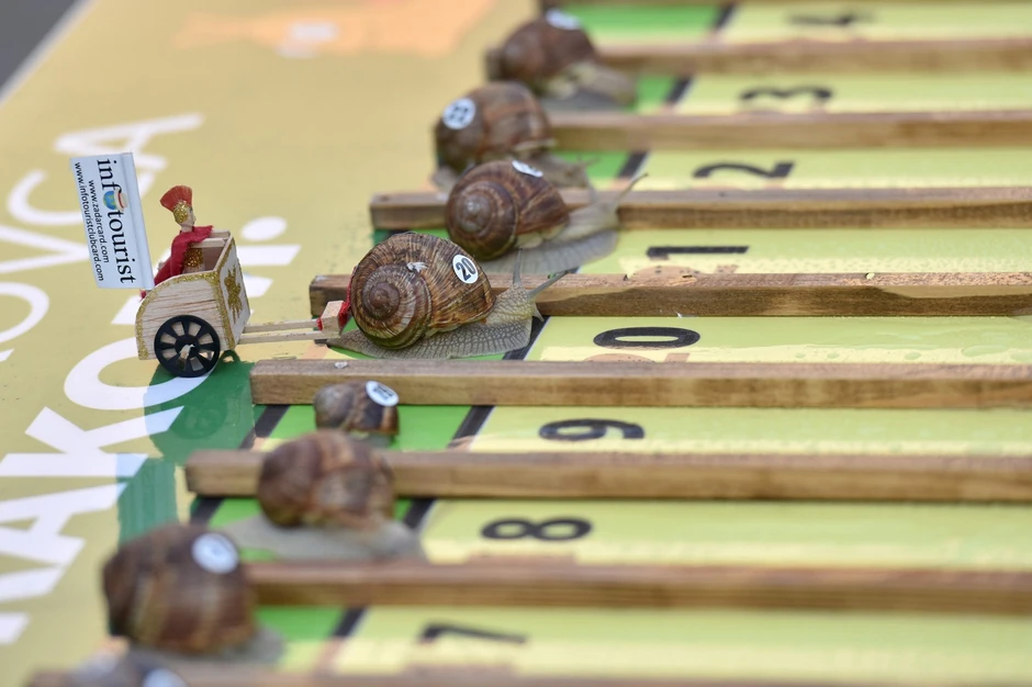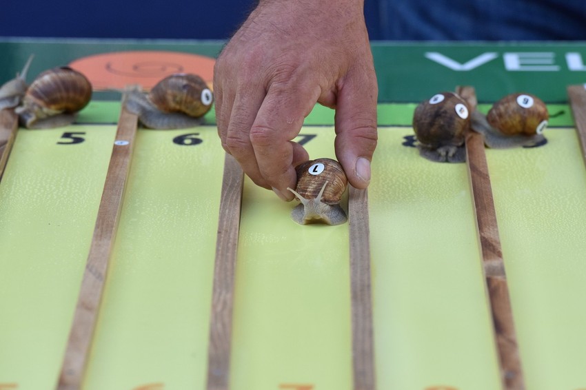 Iako ume da potraje dugo, što zbog sporosti puževa, što zbog toga što se ne drže svojih traka, trka puževa okupi veliki broj posetilaca oko stola na kom se održava.