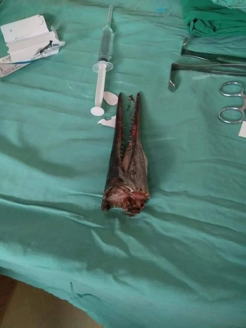 Tindejdžera iz Indonezije je riba igličarka probola kroz vrat dok je bio na čamcu.
