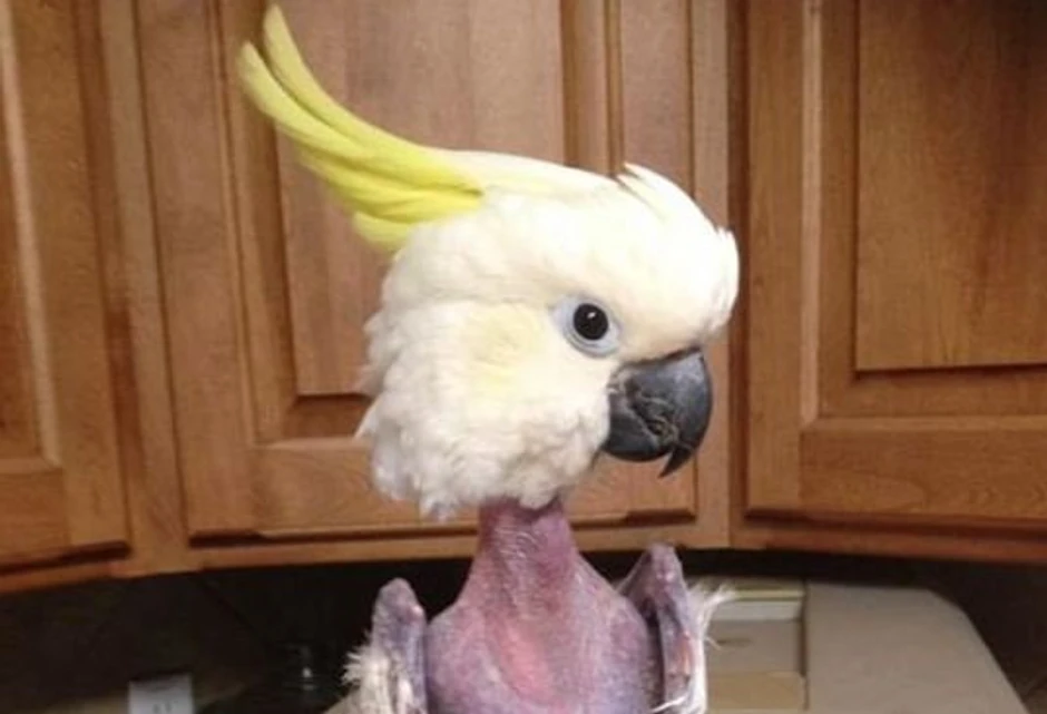 Ovaj papagaj je zapostavljeni kućni ljubimac koga je ponašanje neodgovornih vlasnika toliko pogodilo da je upao u depresiju i od muke sebi očerupao perje.