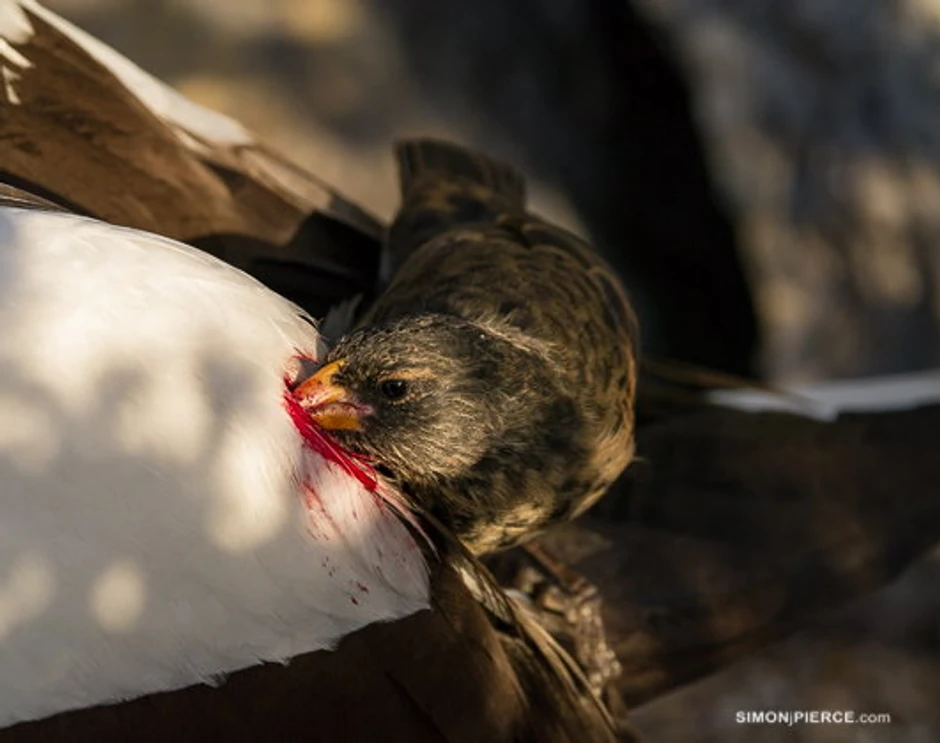 Nije iznenađujuće što je ova krvožedna ptica poznata kao “vampirska zeba”. One su uglavnom hrane krvlju bluna, koje se, za divno čudo, preterano ne bune. Veruje se da su te zebe nekada čistile parazite iz perja ovih ptica i da su na taj način otkrile njihovu ukusnu krv.