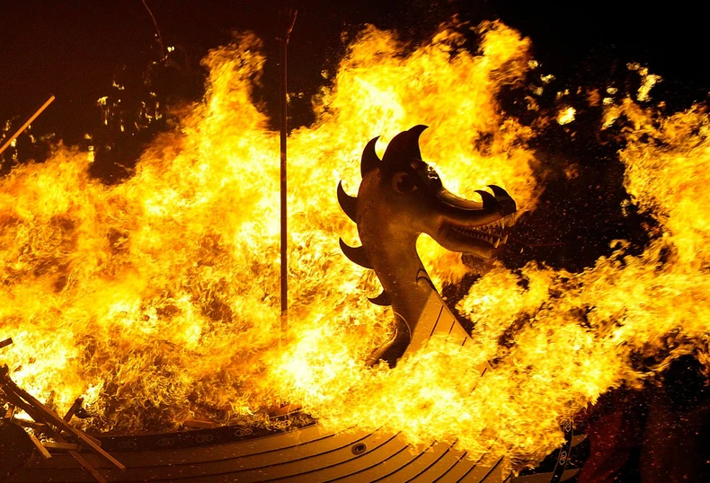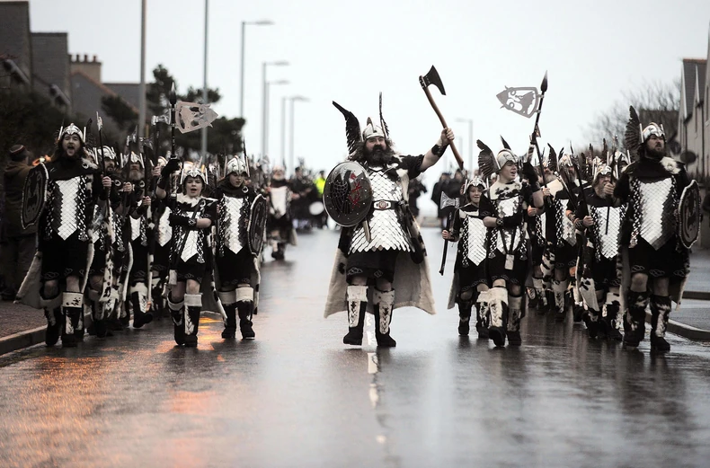 Svake godine, poslednjeg utorka u januaru, stanovnici Šetlandskih ostrva obeležavaju drevni praznik Aphelia (Up Helly Aa), kada su ostrva u ranom Srednjem veku bila izložena pljačkaškim napadima Vikinga. To je i razlog što svečani običaji nose pečat skandinavske kulture.