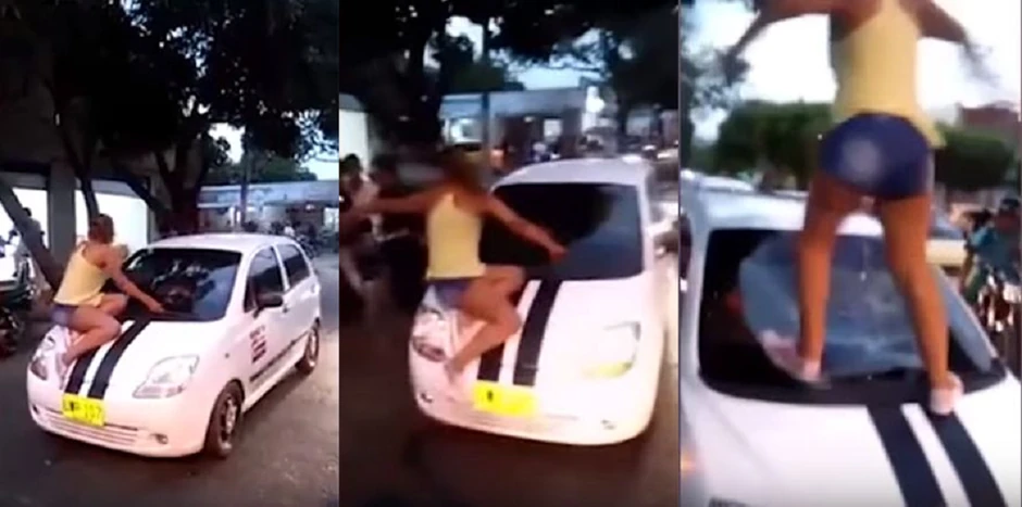 Videvši svog dečka u automobilu sa drugom ženom, sela je na automobil i vikala na dečka i devojku koji su sedeli unutra.