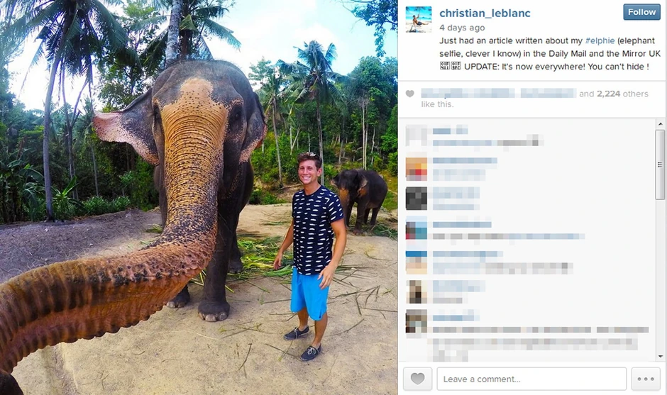 Prvi slonovski selfi ili "elfi" napravljen je na Tajlandu kada je 22-godišnjem studentu iz Kanade slon ukrao GoPro kameru. Kristijan LeBlank je posetio ostrvo Koh Pangan sa devojkom gde su rešili da slonove nahrane bananama. Ipak, nisu očekivali da će slon tako nešto uraditi.