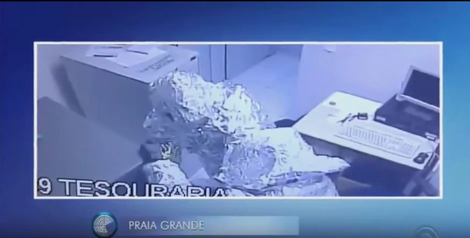 Objavljene su fotografije čoveka koji zavijen u foliju puzi po podu banke i više liči na vanzemaljca nego na pljačkaša. Na mestu gde je pokušana pljačka je ostalo nekoliko predmeta koje su u žurbi ispustili pljačkaši, ali tragova folije nema nigde. Veruje se da su policiji utekli u belim sportskim kolima. Ova neobična pljačka se odigrala u subotu u ranim jutarnjim časovima u filijali Brazilske banke u mestu Praja Grande na jugu države.