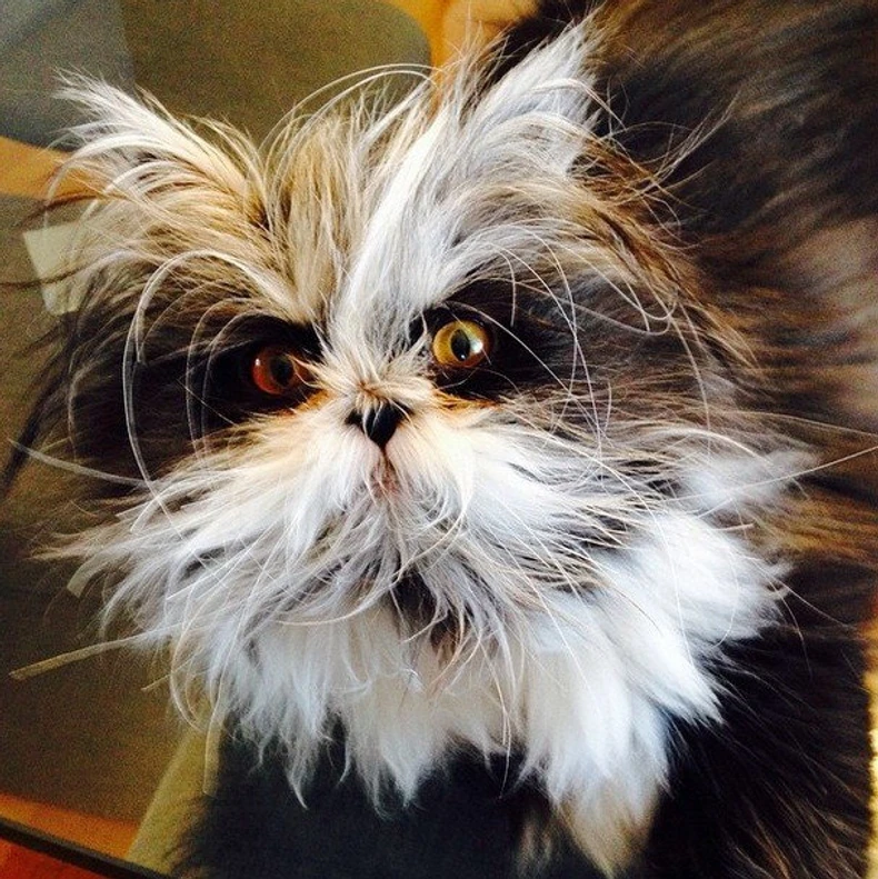 Većina mačaka mogu izvesti perfektno zastrašujuću akciju da se pojave na mestu na kome je niste očekivali i tako vas uplaše. Ali zdravstveno stanje ovog čupavog mačka čini ga u neku ruku zastrašujućim ali i super zabavnim, čim ga pogledate. Njegovo ime je Atom i pripada rodu persijskih mačaka ali on boluje od hipertrihoze ili ti "vukodlakovog sindroma".