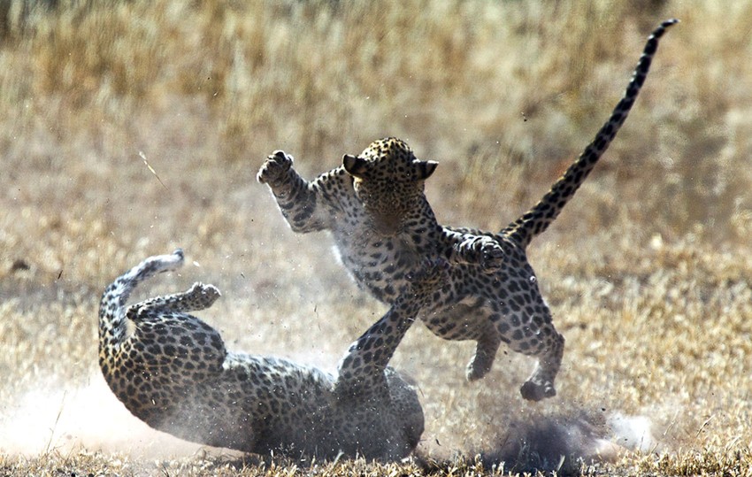 Jedan fotograf slikao je neverovatnu borbu dva leoparda u parku Kgalagadi u Africi. Na njima se vidi fascinantna borba dve životinje, koja kao da se odvija u vazduhu,