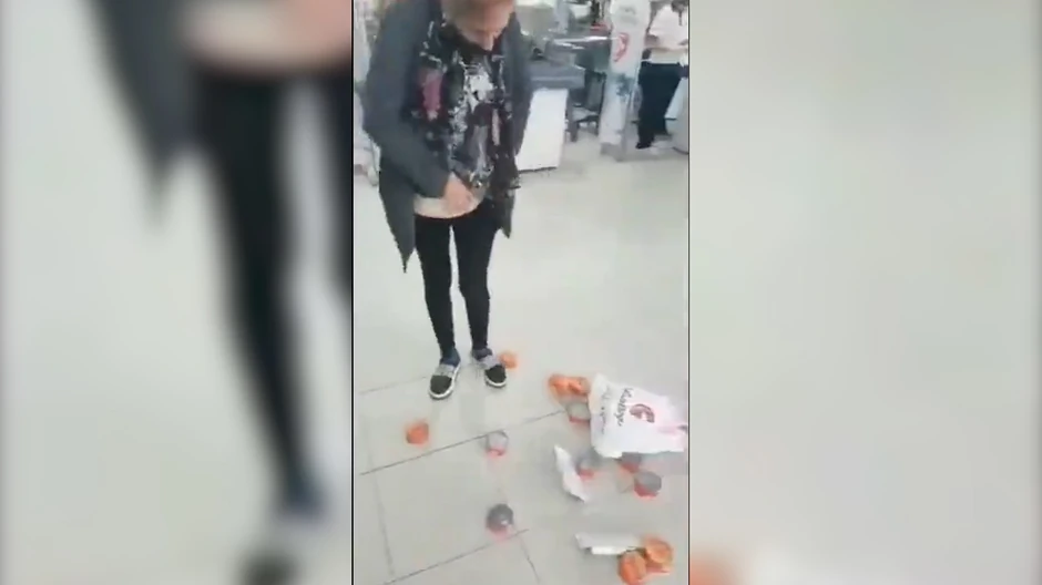 "Kradljivica, pogledajte što je sve uzela" - govori muškarac u videu, a žena mu odgovara da će sve ostaviti, nakon čega počinje da baca konzerve po podu.