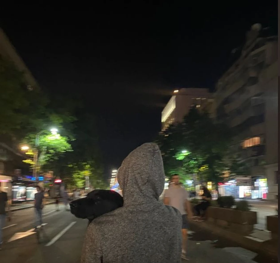 Svi koji su se sinoć našli na platou ispred Skupštine, nisu mogli da ne primete mešanca starog oko godinu i po dana, crne boje, kako luta kroz masu, i šeta između demonstranata i policije. Na njegovu veliku sreću, nekoliko trenutaka pre početka zasipanja policije kamenicama, bakljama i topovskim udarima, a posle i njihovog odgvora u bidu bacanja suzavca, našao se u delu bliže raskrsnici ulica Takovske i Bulevara kralja Aleksandra, gde je kasnije našao svoje nove drugare.