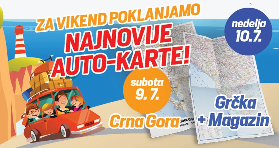 Zbog velikog interesovanja, u "Blicu" ćete ponovo ovog vikenda, 9. i 10. jula, dobiti na poklon auto-karte ove dve najposećenije destinacije za odmor. U subotu, 9. jula, čeka vas auto-karta Crne Gore, a u nedelju, 10. jula, potražite auto-kartu Grčke.