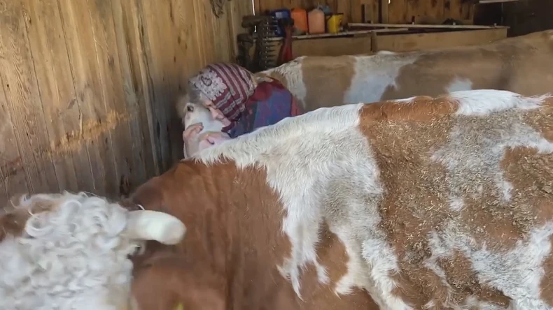 "Ova znade šta se priča o njoj. Moram joj doneti malo hleba. Voli hleb, imam ovde.. Moramo ih podmititi, uplašilo se to", govorila je baka dok je mazila krave u štali, nakon čega je otišla po njihovu omiljenu poslasticu.
